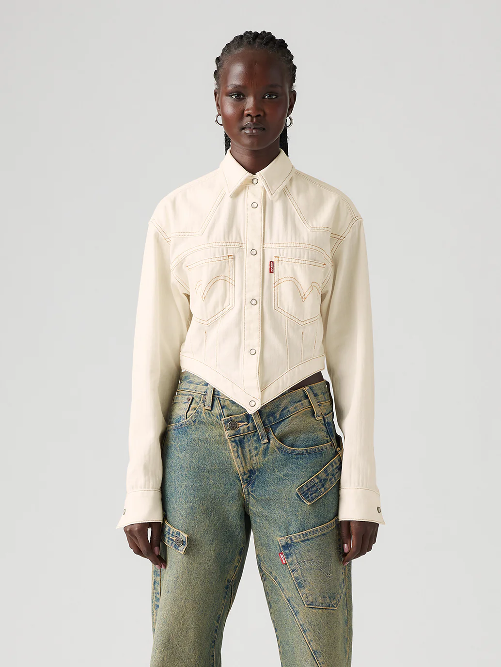 This Cinched Blouse takes the classic Levi’s® button-up and gives it a twist with a triangle-shaped silhouette and an asymmetrical back yoke. We also designed it with contrast stitching throughout.