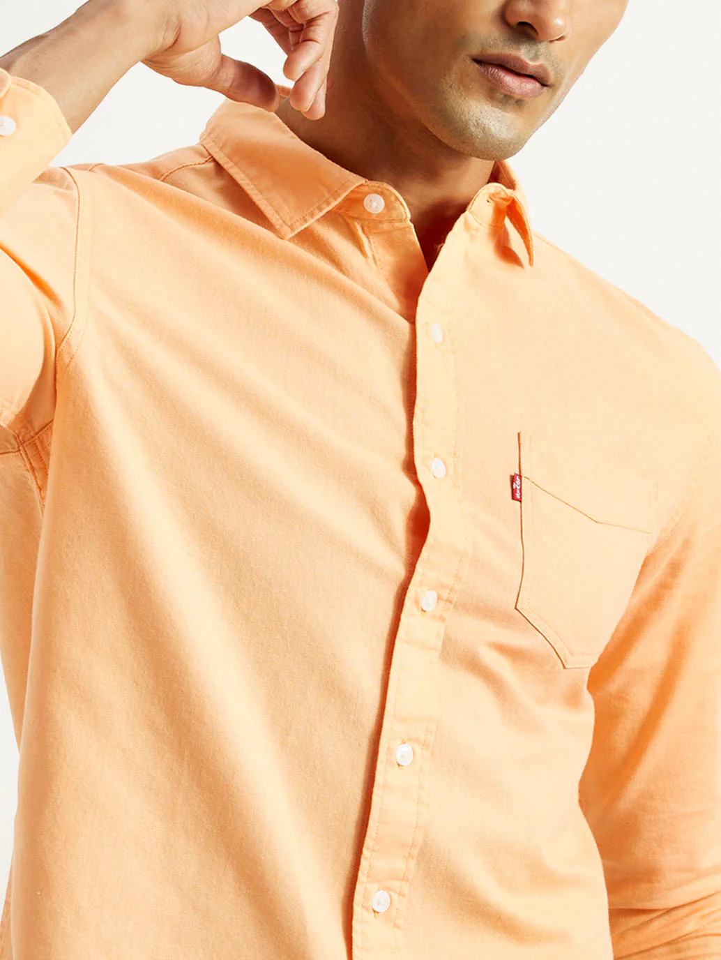 Class up your essentials with this Levi's shirt. The classic spread collar and solid pattern lend an elegant touch, while its pure cotton fabric will keep you comfortable all day long. It is perfect for wearing under a jacket with jeans.