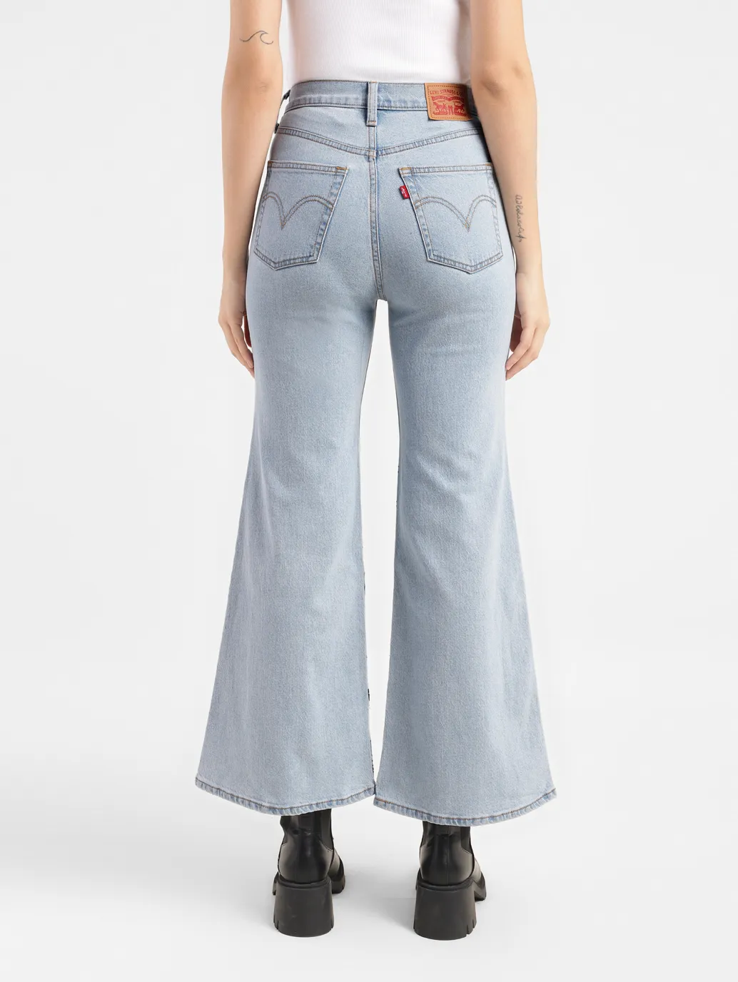 Women's Blue Ribcage Bell Bottom Wide Leg Fit High Rise Jeans