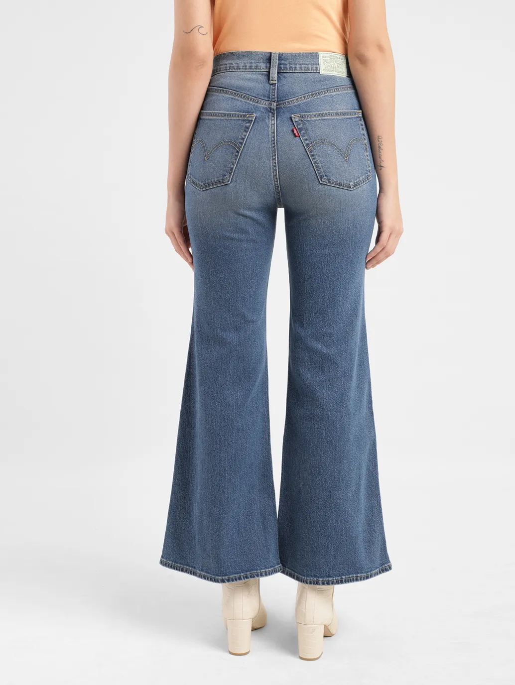 Women's Blue Ribcage Bell Bottom Wide Leg Fit High Rise Jeans