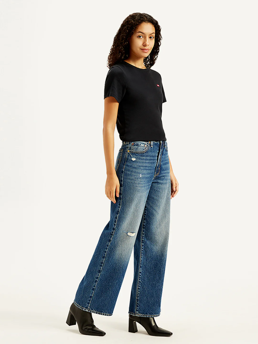 1. Classic wideleg fit; Sits at high rise