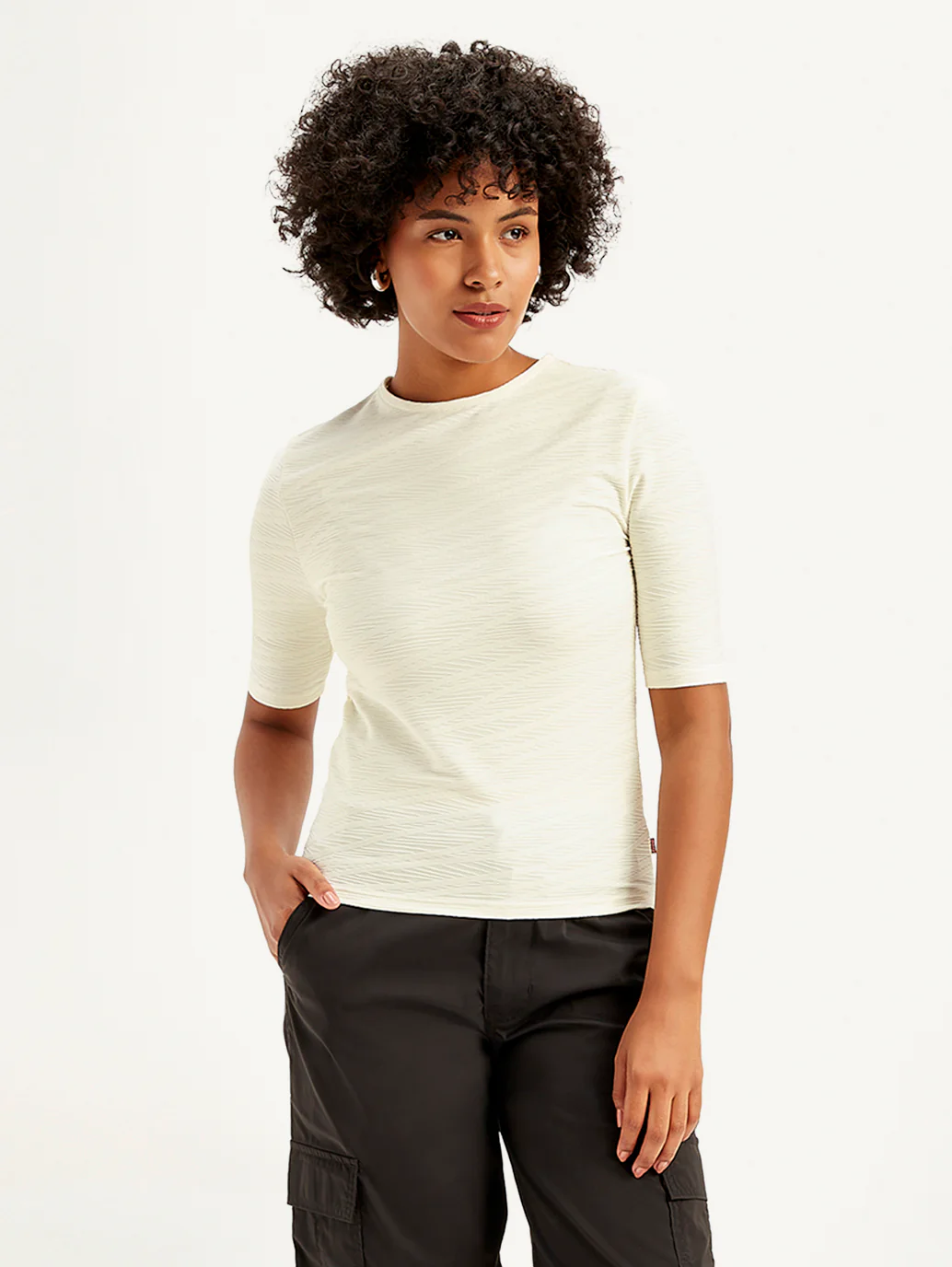 If you never know what to wear for those kind-of-dressy but not-too-dressy plans then this off white textured top by Levi's is your answer. Perfect for all your 'wear jeans and a nice top' situations, this slim fit top is made from comfortable polyester fabric.