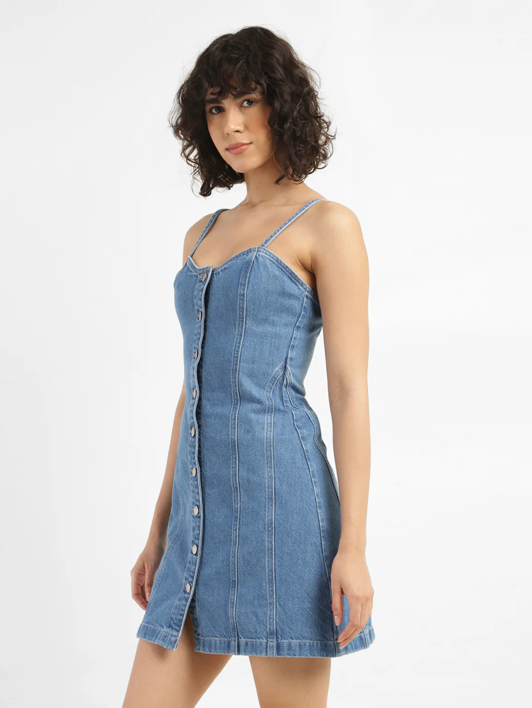 Switch up your style with this Levi's signature blue dress. Designed for a regular fit, it features a Sweetheart neck and sleeveless design. Team this knee dress with a pair of white trainers and a bomber jacket to create the perfect look for a Friday night out.